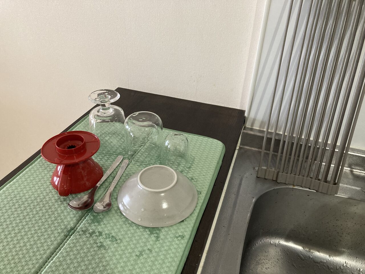 吸水マットを追加したことで、ラックとマットのどちらでも、その時々に合わせられるようになりました。ラックとマットの両方、お皿を立てかけられず平置きしかできないけど、一人分なら充分。